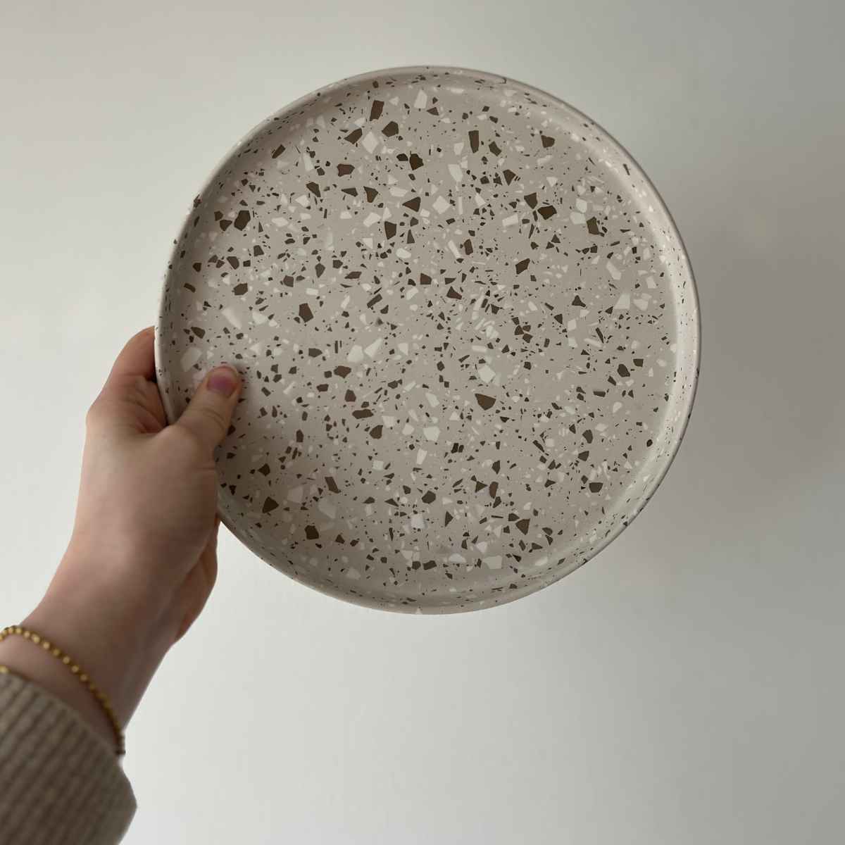 Durch einen aufwändigen Schleifprozess kommt das einzigartige Terrazzo Muster zum Vorschein und macht jedes Produkt zu einem Eyecatcher.